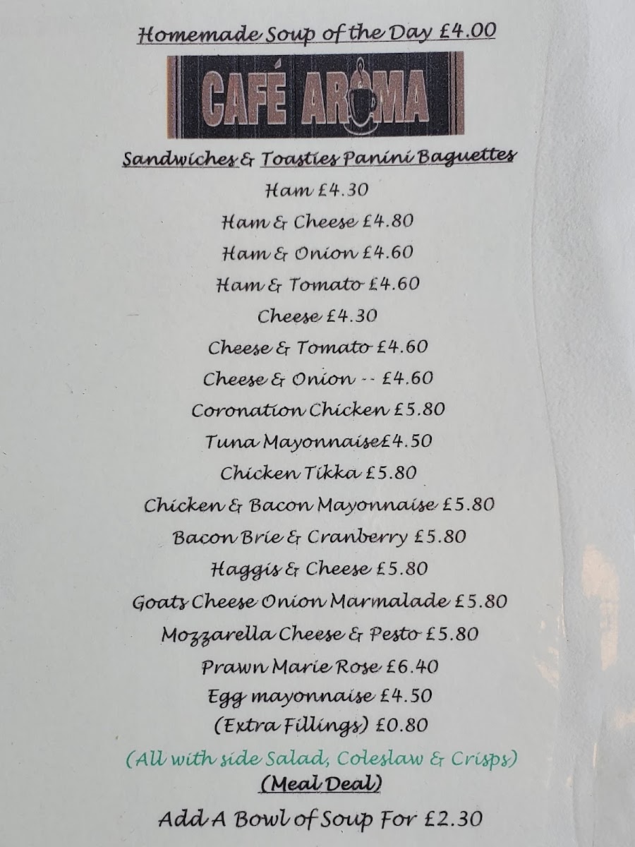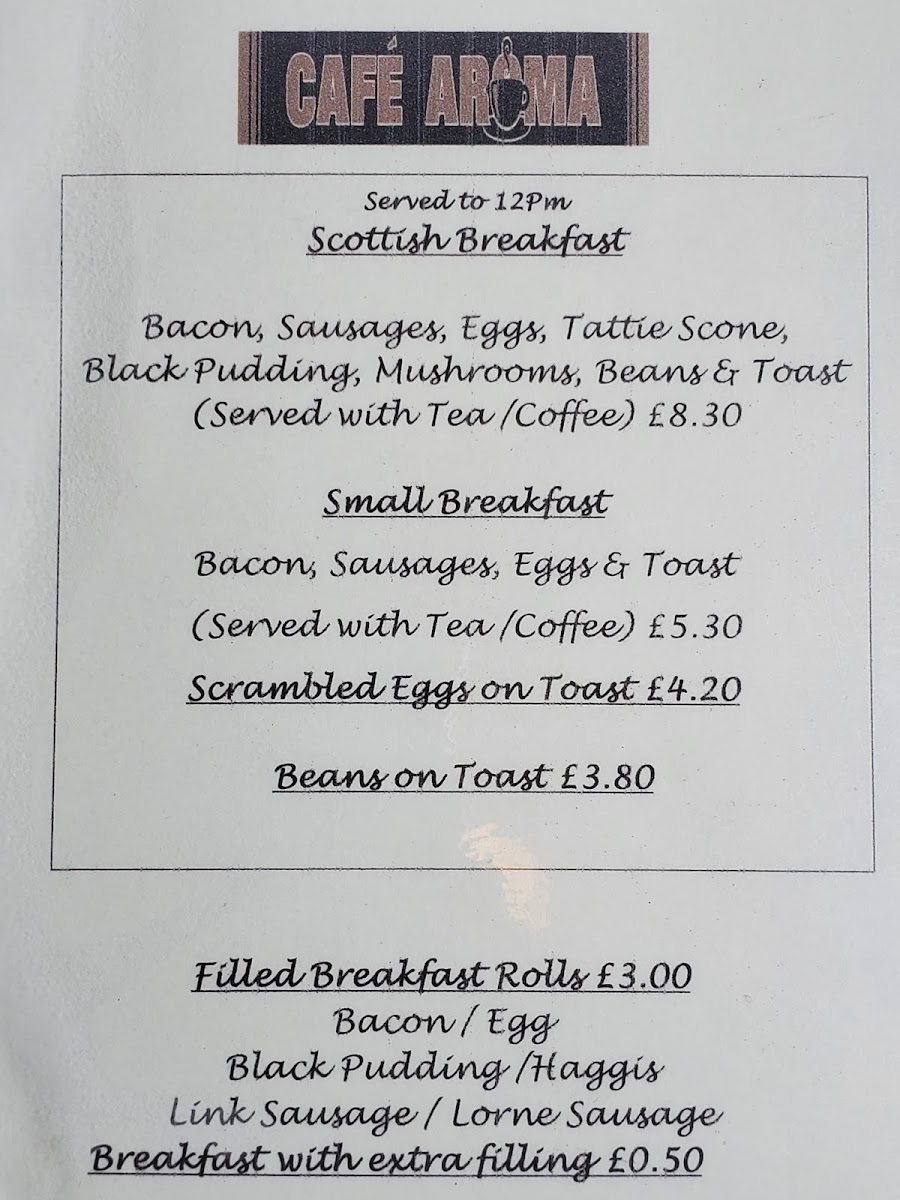 Welcome to Cafè Aroma, a charming café nestled at 54 High St, Kingussie. Known for its cozy atmosphere and friendly staff, this spot is perfect for both locals and travelers seeking a memorable dining experience. The menu boasts enticing options, from refreshing smoothies like Pash 'N' Shoot to comforting breakfast dishes served until noon, including the inviting Homemade Soup Of The Day priced at just £4.70.